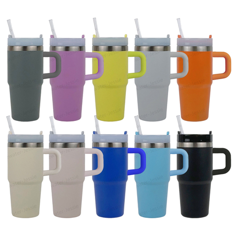Custom Logo 20Oz Kids Tuimelaar Met Handvat Roestvrij Staal Lekvrij Vacuüm Geïsoleerde Mok Met Flip Stro